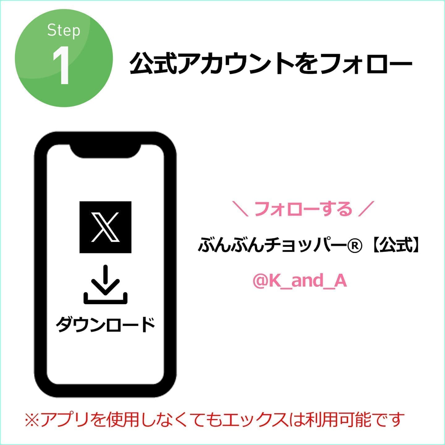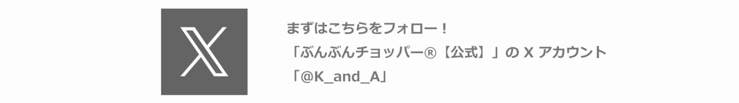 ①ぶんぶんチョッパー公式Xアカウント(@K_and_A)をフォローする。