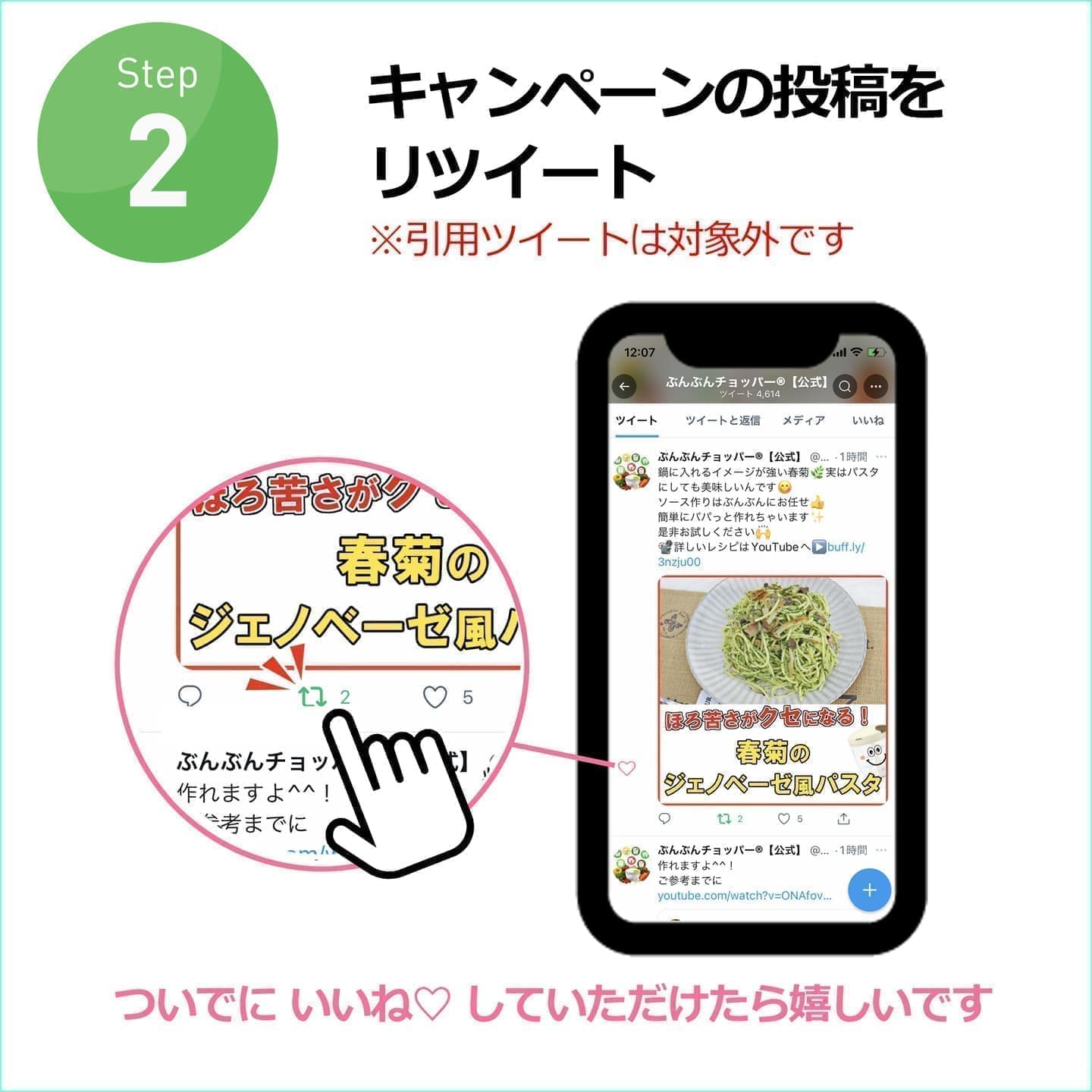 ②キャンペーン投稿をリポスト(リツイート)